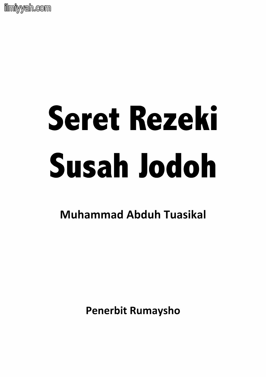 HomeSeret Rezeki, Sulit Jodoh Seret Rezeki, Sulit Jodoh 🌍 e-Book 📗 Seret Rezeki, Sulit Jodoh 📝 Muhammad Abduh Tuasikal حفظه لله تعالى [spoiler title=’Download’ style=’default’ collapse_link=’true’][/spoiler]