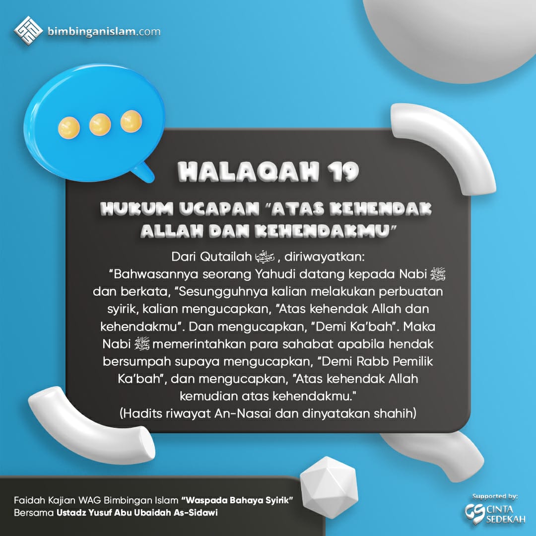Kalau mengatakan: مَا شَاءَ اللهُ وَشِئْتَ (kehendak Allāh dan kehendakmu) saja tidak boleh tidak boleh, lantas bagaimana orang-orang yang berlebihan kepada Nabi Muhammad shallallāhu ‘alayhi wa sallam?