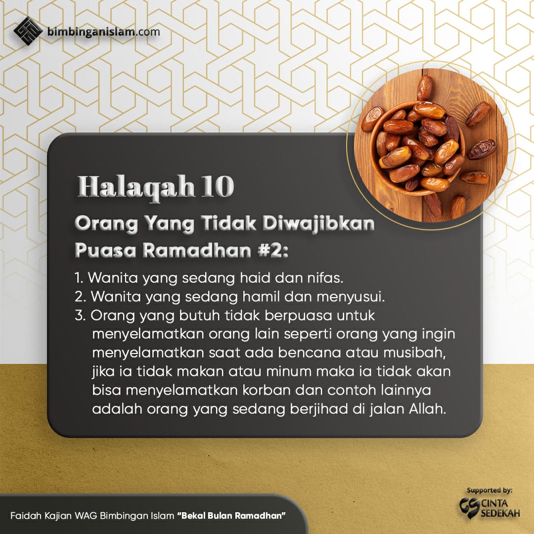 Itulah orang-orang yang telah kita jelaskan, orang yang wajib berpuasa dan orang-orang yang diberikan udzur oleh Allāh Subhānahu wa Ta’āla untuk tidak berpuasa.